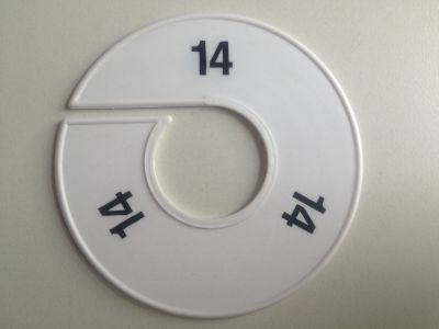 Size Divider 11cm white with print size 14. Diameter of the rack divider is 11cm and the diameter of de hole is 4cm.