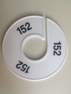 Size Divider 11cm white with print size 152. Diameter of the rack divider is 11cm and the diameter of de hole is 4cm.