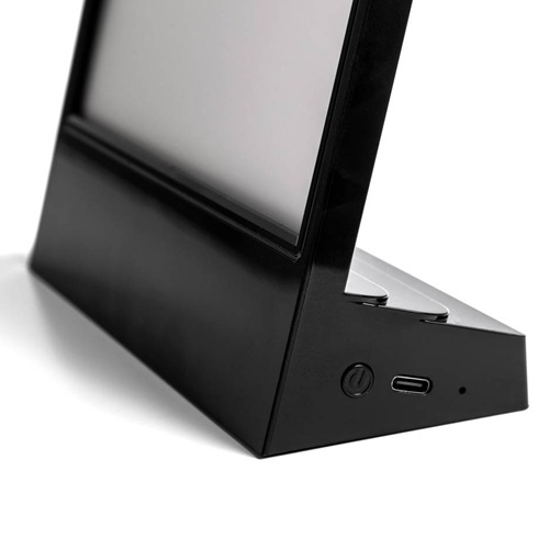 LED L-standaard A5 zwarte uitvoering voor 15x21 cm papier. Voorzien van transparante folie, en met een lichtgevend display. Opladen via USB. Brandduur ongeveer 8 uren op een single charge. Afmeting 15,5x24,5x6,2cm. Papiermaat 148x210mm, zichtmaat 138x202mm. Lichtkleur 6000K, intensiteit 23 lux en wattage 1,6W.
