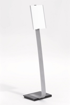 Aluminium vloerstandaard met stevige metalen voet voor A4 document. INFO SIGN Voorzien van een acryl INFO SIGN paneel in A4 formaat dat in de hoogte verstelbaar is en naar keuze kan gedraaid worden van staand naar liggend formaat. De zware voet met rubberen nopjes garandeert stabiliteit en voorkomt wegglijden. Heel eenvoudige instructies helpen u bij het monteren. Leeshoek: 10°. Hoogte A4 staand formaat: 1,18m / 1,11m Hoogte A4 liggend formaat: 1,13m / 1,06m