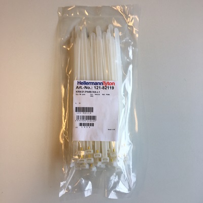 Fabricaat: Hellerman Tyton - article 121-82119 Cable Tie locked by glass fibre pin. Type KR8/21-PA66-NA-L1