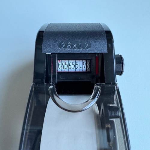 Prijstang MoTEX MX-2612 New met 7 posities, 26x12mm voor golfrand en rechthoekige etiketten, afmeting etiket 26x12 mm. Maximaal 7 digits. Etiketten moeten aan buitenzijde op de rol zitten, passende etiketten beginnen met art.nr. 27113..... Passende inktrol heeft artikelnummer 99279187.