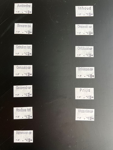 Prijstang Sato Judo FOOD >13 teksten< + 8 posities datum. 2-Regelige prijstang. Afdruk op de bovenste keuze uit 13 teksten, en op de onderste regel een prijs met €9999,99 of datum print. Benodigde etiketten beginnen met artikelnr. 27173... of 27369311. Bovenste regel is instelbaar op volgende teksten: Weggooien op Ontvangen op Omgepakt op Gemaakt op Geopend op Ontdooid op Ingevroren op Gebruiken tot Houdbaar tot Bewaren bij Aanbieding Prijs Inhoud