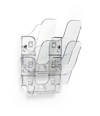 Folder display with a modern design to showcase information vertically in A5 size. Contains 2 vertical A5 divisions. Sizes: 250x180x105 mm (HxWxD). Can also be mounted as 2 seperate folder displays.