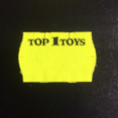 Labels 25x16 fluor yellow semi-permanent with print in black on the top side of the label: TOP 1 TOYS.