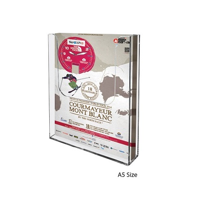 Acrylic U-shaped display A4 vertical/portrait with no holes.
