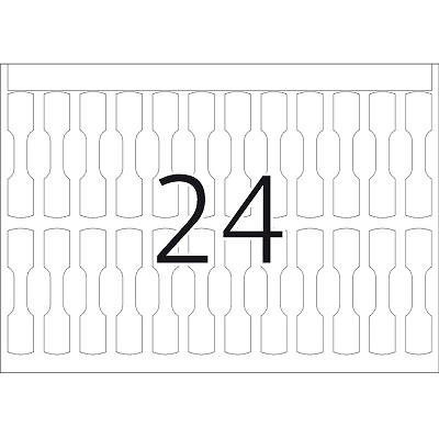 Juwelier-etiket 49x10 mm doos 5.000st (inhoud 210 velletjes à 24 etiketten) Permanent klevend met in het midden deel niet klevend. Geschikt om ringen en dergelijke te prijzen.
