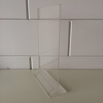 L-shaped acrylic display 297x210mm width x height horizontal. A piece of paper can be slid in between the two layers of acrylic. Made in Holland.