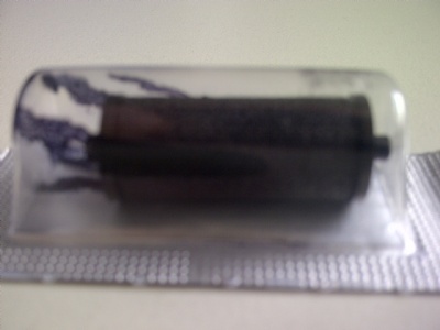 Inkroller for hand labeller Airex 2612. Sizes are 11,7 x 32,4mm (pin to pin). Diameter of the axis is 2,9mm.