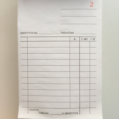 Notepad SchweizerFranken neutral 10x15cm. 2 x 50 pages per notebook. The notepads are bundled per 10 notepads. Paper is white eco paper 48,8 gr/m² (slightly wood-contained). German text.