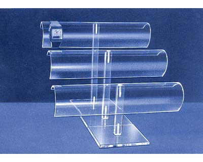 Acryl horlogepresentatie of armbanddisplay bxh 25x20 cm. Op de afbeelding staan 3 hoogtes achter elkaar, nl. 10cm, 20cm en 30cm hoogte. Zo lang de voorraad strekt.
