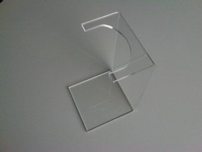 Acryl laarzenstandaard hoogte 20cm, diepte voet 12cm, breedte 12cm, diepte hiel 5cm. Dikte acrylaat 5mm.