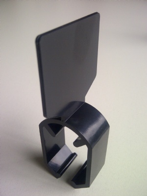 Maataanduider met klem zwart-blanko. Breedte vaantje is 39,8mm x hoog 30mm. Geschikt voor plat ovale buis 35x16 mm en geschikt voor ovale buis 35x20 mm.