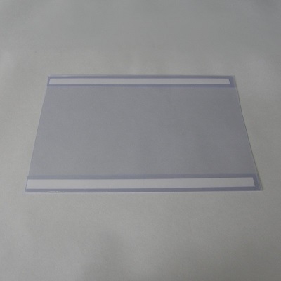 Folie kaarthouder Din A3 horizontaal. Voor afmeting 420x300mm. Folie met 2 vouwen, 1 vouw aan de bovenzijde en 1 vouw aan de onderzijde. Achterzijde voorzien van 2 dubbelzijde tape / kleefstroken. Dikte 0,4mm. Glanzende uitvoering.