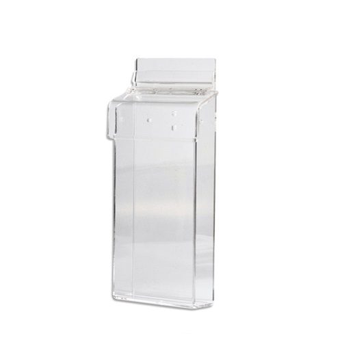 Acryl-standaard voor lederwaren hoogte 20cm vuldiepte 6cm, totale diepte 16cm en breedte bovenaan 3,5cm en breedte onderaan 5cm. Zo lang de voorraad strekt.