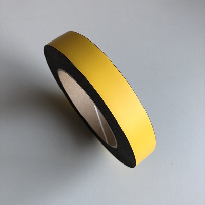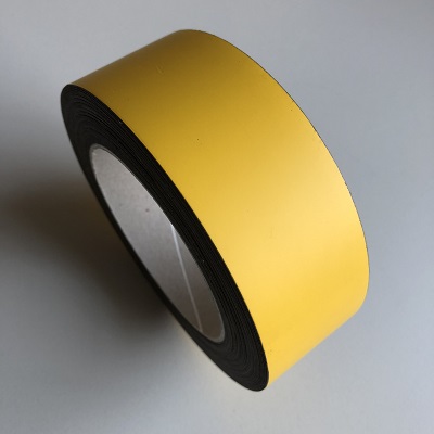 Magneetband geel rol 10 meter breed 40mm, eenvoudig te snijden/knippen en beschrijfbaar, dikte 0.6 mm. Voorzien van een beschrijfbare kunststof gele laag, welke met whiteboardmarker of permanent marker beschreven kan worden.