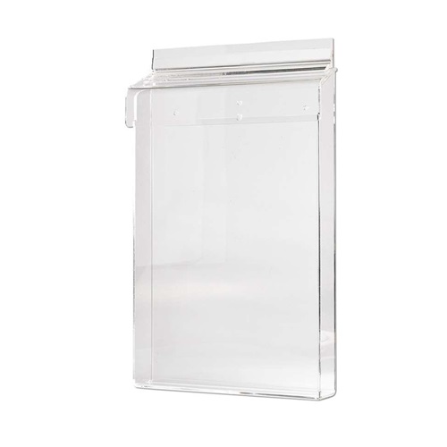 Wall folder display A4 heavy edition - suitable for outdoor use. Enhanced with a flap on the top side of the display. Din Long. Measurements 320mm x 216mm x 55mm.