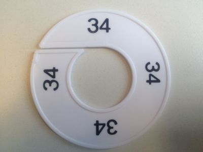 Size Divider 9cm white printed size 34. Diameter of the rack divider is 9cm and the diameter of de hole is 4cm.