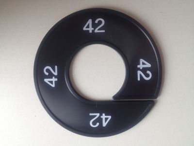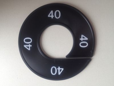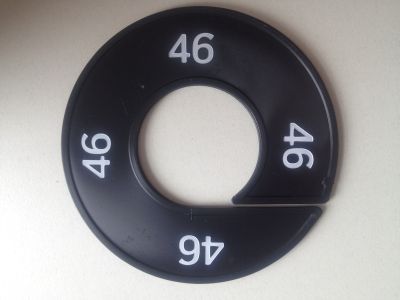 Size Divider 9cm black printed size 48. Diameter of the rack divider is 9cm and the diameter of de hole is 4cm.