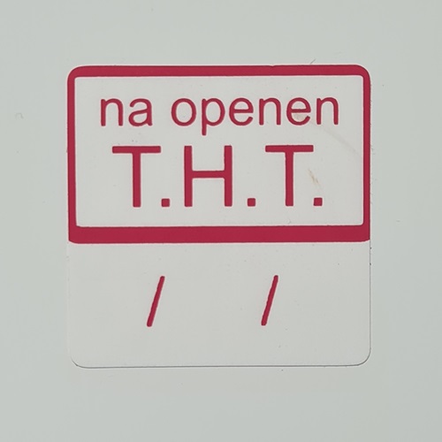 Etiket of daglabel > na openen THT < wit/magenta permanent klevend, geschikt voor in de diepvries, afmeting 25x25mm. 500 Stuks per rol. Geleverd in kartonnen dispenserdoosje. Rolbreedte 31mm.