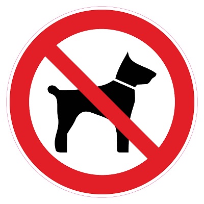 Zelfklevend pictogram - Verboden voor honden - afmeting diameter 10cm, achterzijde is zelfklevende vinyl sticker. Ronde sticker.