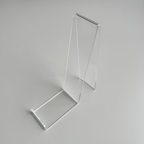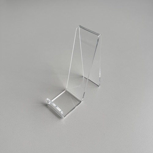 Standaardje transparant afmeting bodemmaat breed 40x50 mm voor prijskaartjes die vertikaal of vanaf 2 zijden bekeken moeten kunnen worden. Per zakje van 100 stuks. Geschikt voor materiaaldikte voor flexibel materiaal tot 1mm, en voor hard materiaal tot 0,5mm. Universeelstandaardje, kaarthoudertje.