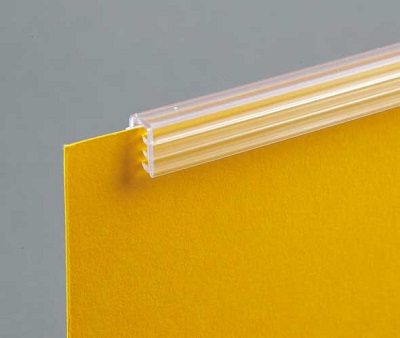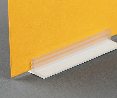 SuperGrip Signholder lengte 75mm voor bevestiging van informatie aan schappen, etalages of wanden, voor ca. 3mm dik materiaal. Zelfklevend. Prijs per 100 stuks.