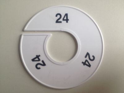 Size Divider 11cm white with print size 24. Diameter of the rack divider is 11cm and the diameter of de hole is 4cm.