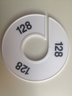 Size Divider 11cm white with print size 128. Diameter of the rack divider is 11cm and the diameter of de hole is 4cm.