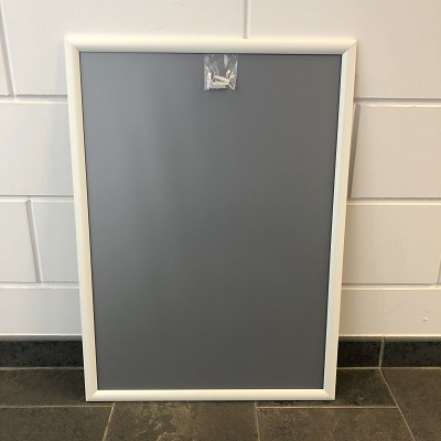 Klik-lijst voor postermaat 50x70 cm - kleur WIT - ALU-klap 25 mm rechthoek/verstek, voorzien van ontspiegelde voorzetfolie.