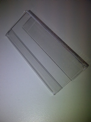 Kaarthouder transparant PVC voor broodkorf 39x95 mm, achterkant 20 mm lang i.p.v. 10 mm.