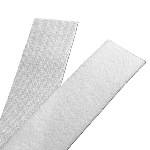 Back-to-Back Hook and Loop fasteners 20mm white. Lenght 25 meter per roll. Consists of hook on one side and velour loop on the revers side. Made in Europe