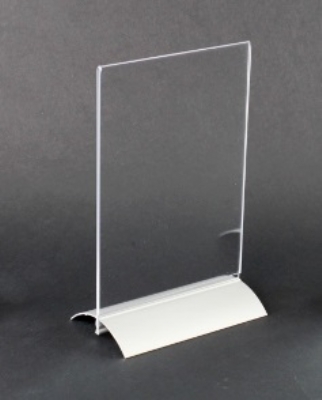 Presenter / tafelstandaard / Menu standaard acryl 1/3A4 - 10x21cm - 2-delige prijskaarthouder met aluminium klemprofiel als voet.