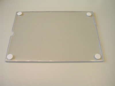Kaarthouder A5 , alleen aan de korte zijde open, en met tape-rondjes op de achterzijde. Deze afmeting heeft niet de duimgrip zoals op de foto wel aanwezig. Buitenmaat is 15,8x21,6cm. Materiaal is niet met schroeven te bevestigen. Materiaal is van hard kunststof. Zo lang de voorraad strekt.