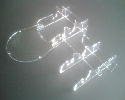Schuifstandaard KLEIN transparant. Doosje à 4 stuks. Afmeting standaardje bxdxh 40x68x50 mm. Dit artikel is een alternatief voor artikel 14332901.