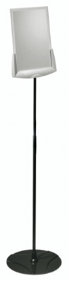 Infobase telescoop met A4 acrylhouder De metalen voet en het statief zijn voorzien van een krasvaste verflaag. Optimaal leescomfort door het verstelbare zichtpaneel houder (van Polystyrol). • In de hoogte verstelbare standaard/voet (66 - 114 cm) • Verstelbare zichtpaneelhouder (+/- 14°) • Stabiel Kleurcombinatie is antraciet en grijs.