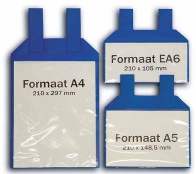 Hoes voor kaartmaat 210x297mm-A4 portrait, insteekhoes met 2 lussen. Kleur blauw, afmeting buitenzijde 225x305 mm.