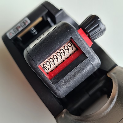 Afdruk Euro-teken + 9999,99. of 8 cijfers voor een nummer of een datumcodering, al dan niet in combinatie met bedrukte etiketten. Passende etiketten beginnen met artikelnr. 2711.... .