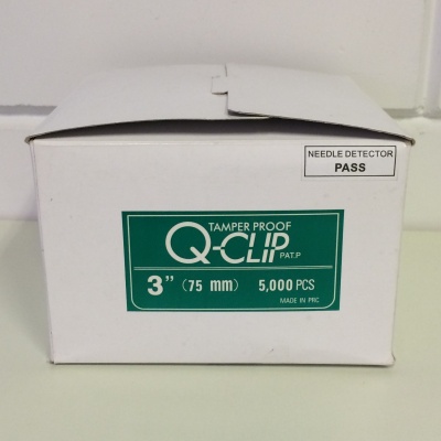 Veiligheidssluitingen / securatachment / sluitringen / stringpins Q-Clip 3 = 3 inch / 75mm, doosinhoud 5.000 stuks. Dit artikel is voor handmatig aanbrengen van prijskaartjes aan bijvoorbeeld koffers en andere artikelen met een opening, om de veiligheidssluiting door te kunnen halen.