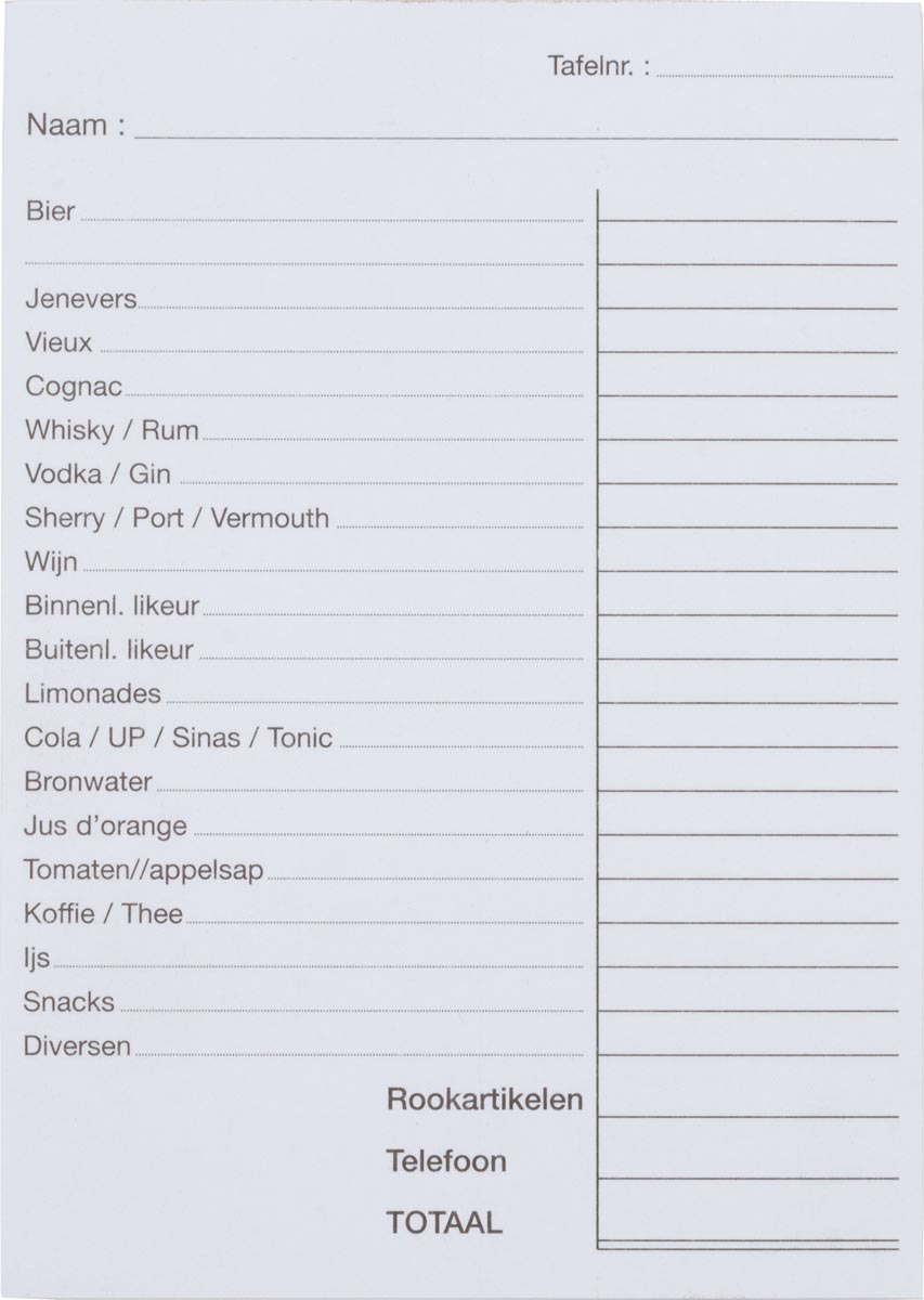 Refreshments notepad for bar/restaurant/hotel, 500pcs per bundle. Dimensions 75x170mm.