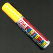ZIG Posterman PMA-120 yellow marker with a 7-15mm wide chisel tip. Solely to be used on a non-porous basis. Can be removed with a special remover and therefore cannot be removed with water or soap.