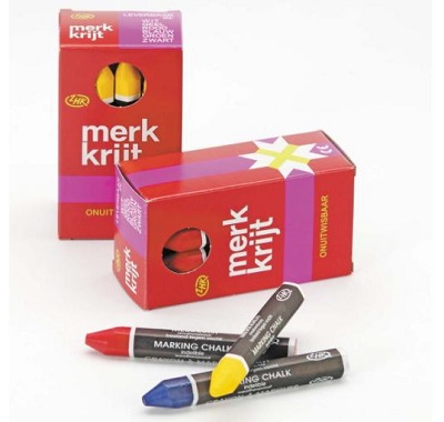 Non-erasable chalk WHITE - round chalk per box of 12pcs. - Fat, extra non-erasable for raw surfaces like concrete and stone. - Waterproof - Available in white, yellow, red, blue, green and black. 1 colour per box.