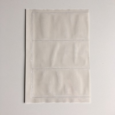U-shaped cover/sheet 55mm x 113mm per 1000pcs. Permanent adhesiveness. Suitable for cards 45x110mm. The image shows 3 u-shaped covers.