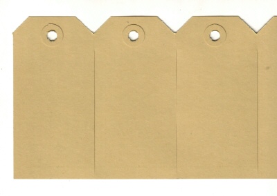 Cardboard labels 55x110 mm white with a drill hole with a diameter of 5mm. Each box contains 1000 labels. One strip contains 4 labels that can be seperated from one another. Strong cardboard labels 220-230 gram/m2.