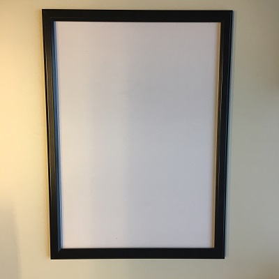 Klik-lijst voor postermaat 50x70 cm - kleur WIT - ALU-klap 25 mm rechthoek/verstek, voorzien van ontspiegelde voorzetfolie. Klapraam, wissellijst, wandklapraam, kliklijst. Levertijd 1 week.