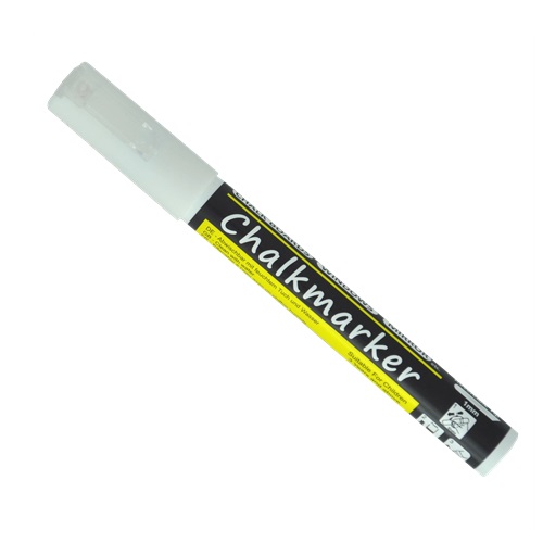 Chalkmarker round tip white 1 mm wide. Removable with water on a non-porous foundation.